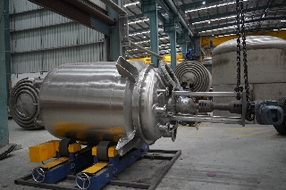 NEW/UNUSED Internal finish 240 grit buff polished-Bright polished, external buff polish to a matte finish "U" stamped 10 mm thick welded dish heads (2:1) 12 mm thick Coil: 114 mm OD x 4 mm thick Limpet covers bottom dish and 2615 mm of straight side (pitch 150mm) Coil heating surface area With Insulation rings and upper drip ring. Two top lifting lugs and one tailing lug motor UL listed All nozzles have 304 SS flanges Support Type: Lugs.